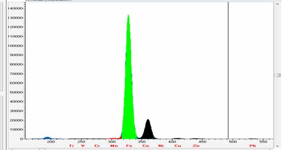 以下使用EDX 3600B型對鐵礦國標樣GSBD31006a實際測試的所得的譜圖,工作曲線等相關數(shù)據(jù):