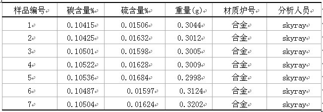 試驗(yàn)數(shù)據(jù)表明:高頻紅外碳硫儀CS-168型測試有色金屬及合金中的碳硫含量,結(jié)果準(zhǔn)確,且重復(fù)性好,簡單,快速??梢詮V泛的應(yīng)用在各種各樣的合金樣品中。