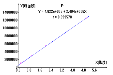 圖2 氟離子標(biāo)準(zhǔn)曲線方程及線性關(guān)系圖