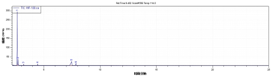 將樣品用乙酸乙酯稀釋合適倍數(shù)后,準(zhǔn)確吸取1μl溶液進(jìn)行測試,譜圖和檢測結(jié)果如下