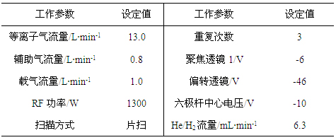 表2.碰撞反應(yīng)模式下儀器工作參數(shù)