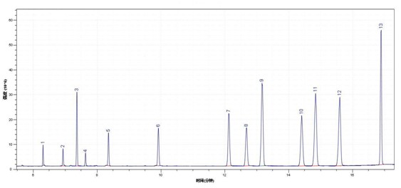 柱箱升溫程序:50℃(2min)25℃/min 200℃(7min)20 ℃/min 280℃(5min)