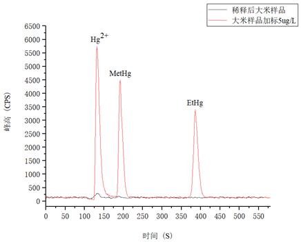 本文參考國家衛(wèi)生和計劃生育委員會發(fā)布的《GB 5009.17-2014 食品中甲基汞的測定》,通過HPLC-ICPMS聯(lián)用,采用C18柱,利用等度洗脫的方式對稀酸浸提后的大米進行了分析,同時對樣品采取了加標處理,且加標回收率良好。測試結果表明,該方法能夠快速準確地進行大米樣品中汞形態(tài)的分析。