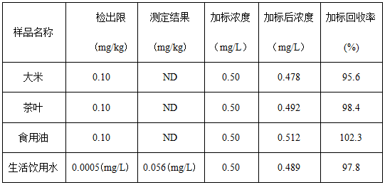 表2 4種食品試樣測試結(jié)果及加標(biāo)回收率