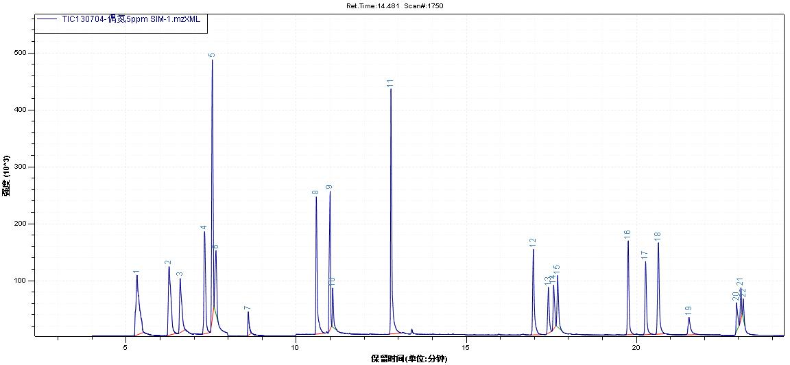 紡織品中23種偶氮染料的測試TIC圖