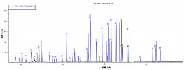 圖5 35種鹵代烴組分SIM色譜圖